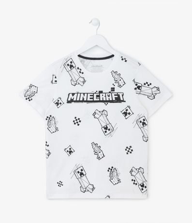 Ref: Camiseta infantil com golinha redonda, manga curta e estampas variadas do jogo do Minecraft.