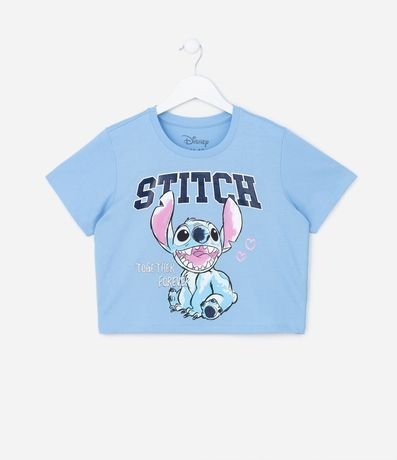 Ref: Camiseta infantil confeccionada em algodão, com mangas curtas e estampa do Stitch.