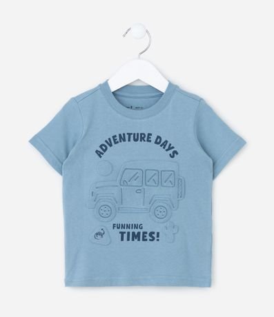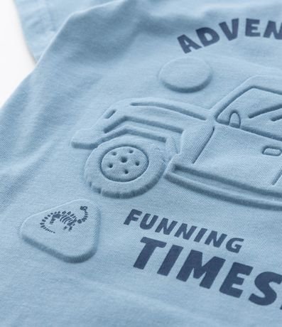 Ref: Camiseta infantil confeccionada em algodão de material mais sustentável. Possui gola redonda, manga curta e estampa em relevo de carro.