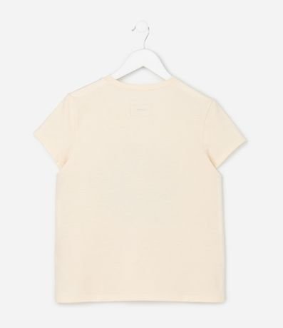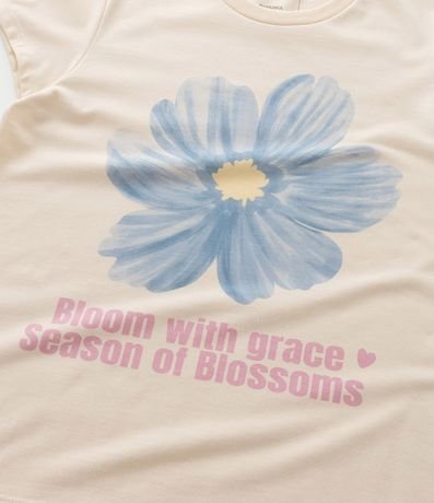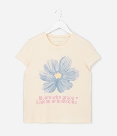 Ref: Camiseta infantil confeccionada em algodão certificado BCI e boas práticas ambientais. Modelo com gola redonda, manga curta e estampa floral inspirada na tonalidade Eggnog, trazendo leveza e delicadeza para os looks de verão.