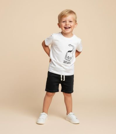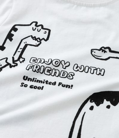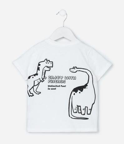 Ref: Camiseta infantil confeccionada em algodão certificado bci. Com gola redonda, manga curta e estampa frente e costa de dinossauros.