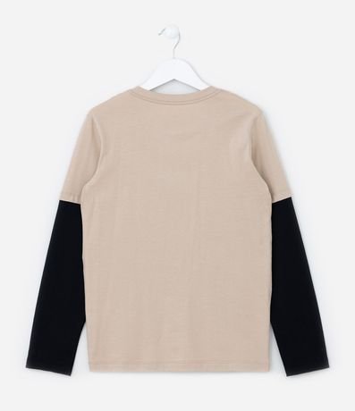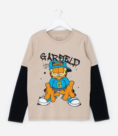 Ref: Camiseta infantil confeccionada em algodão, com gola redonda, mangas longas contrastantes e estampa do Garfield, super divertida!