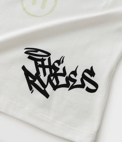 Ref: Camiseta infantil confeccionada em algodão, com gola redonda, manga curta e estampa de grafiti.