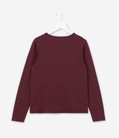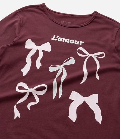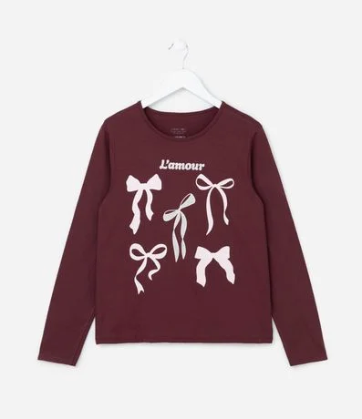 Ref: Camiseta infantil confeccionada em algodão certificado mais sustentável, com gola redonda, mangas longas e estampa de lacinhos.