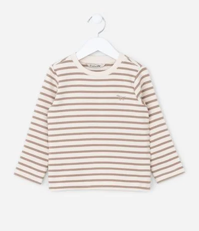 Ref: Camiseta infantil confeccionada em algodão, com gola redonda, manga longa e estampa listradinha.
