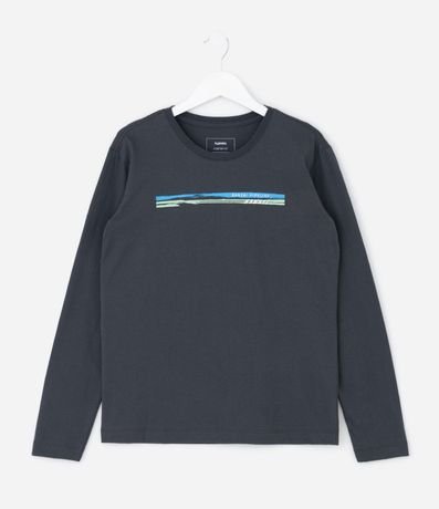 Ref: Camiseta infantil confeccionada em algodão certificado BCI, com gola redonda e mangas longas. Possui estampa localizada com faixa listrada e lettering inspirado no universo do surf, oferecendo conforto, respirabilidade e estilo para compor looks casuais do dia a dia.