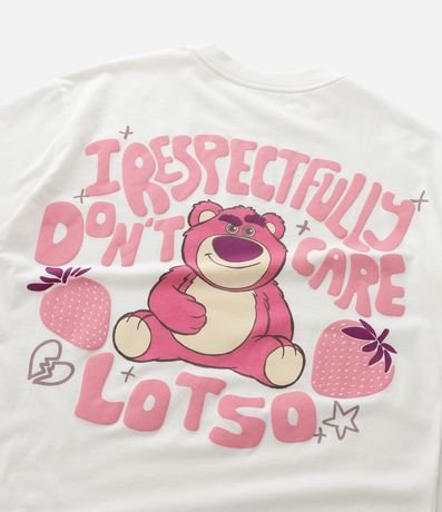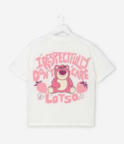 Ref: Camiseta infantil modelo oversized, confeccionada em algodão certificado BCI, com gola redonda e mangas curtas. Possui estampa localizada do personagem Lotso, da animação Toy Story, conhecida por seu universo lúdico e histórias marcantes que envolvem amizade e aventura.
