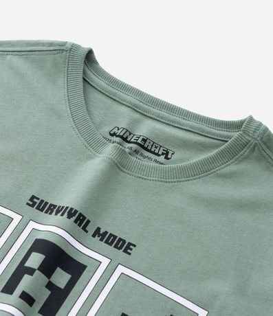 Ref: Camiseta infantil confeccionada em algodão mais sustentável através de boas práticas ambientais. Possui gola redonda, manga curta e estampa do Minecraft.