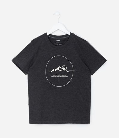 Ref: Camiseta infantil confeccionada em algodão, com gola redonda, manga curta e estampa de montanhas.