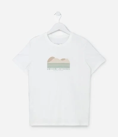 Ref: Camiseta infantil em algodão com mangas curtas, gola redonda e estampa montanhas.