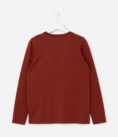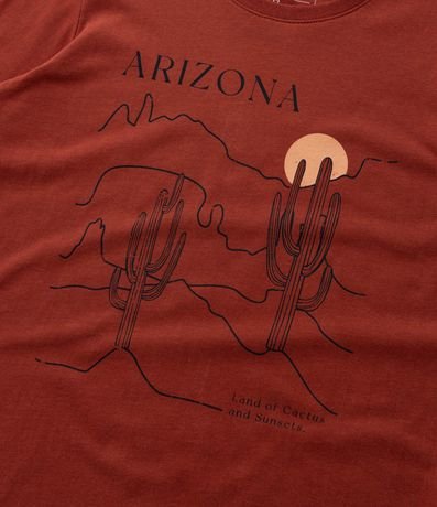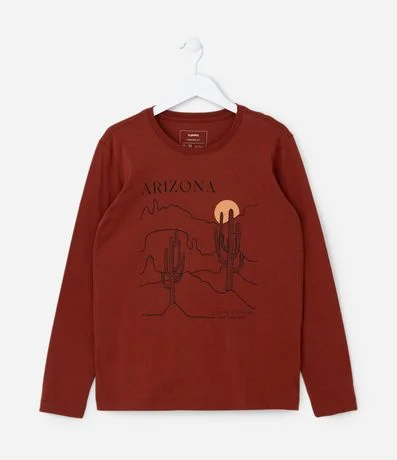 Ref: Camiseta infantil com gola redonda, mangas longas e estampa paisagem com cactos. A peça é confeccionada com boas práticas ambientais e algodão certificado bci.