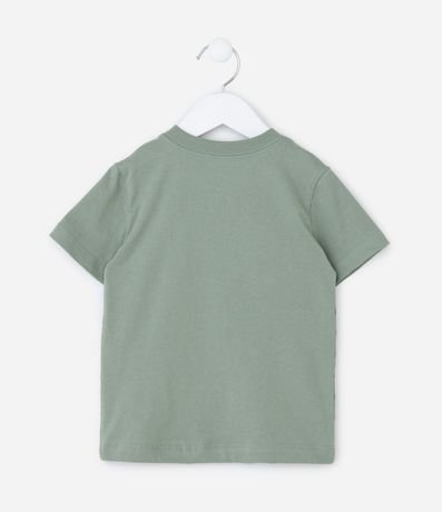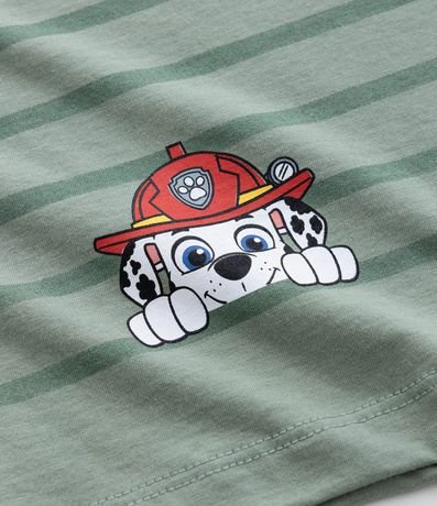 Ref: Camiseta infantil confeccionada em algodão de material e processo mais sustentáveis. Possui gola redonda, manga curta e estampa da Patrulha Canina com listras.