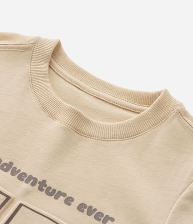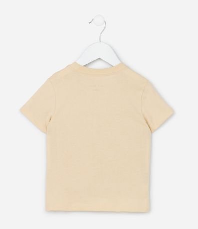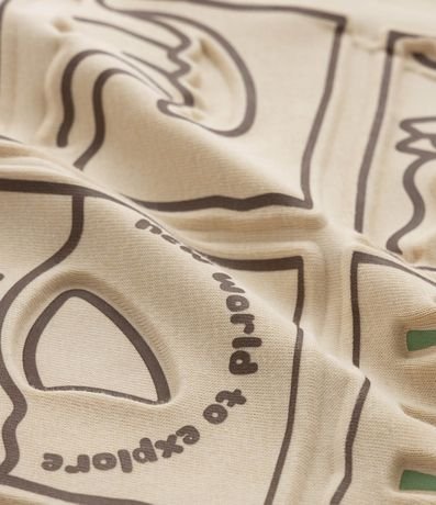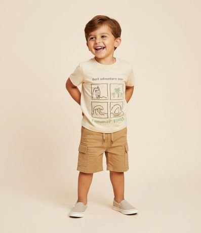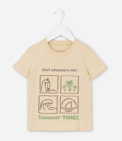 Ref: Camiseta infantil confeccionada em algodão mais sustentável. Possui gola redonda, manga curta e estampa em relevo de ícones de praia.