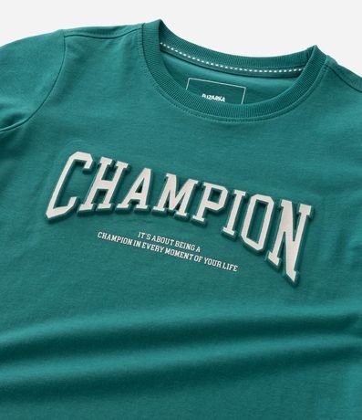 Ref: Camiseta infantil confeccionada em algodão de material mais sustentável. Possui gola redonda, manga curta e estampa em relevo com lettering "Champion".
