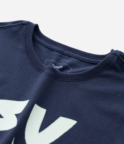 Ref: Camiseta infantil confeccionada em algodão mais sustentável. Possui gola redonda, mangas curtas e estampa lettering "Surf".