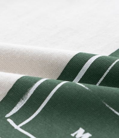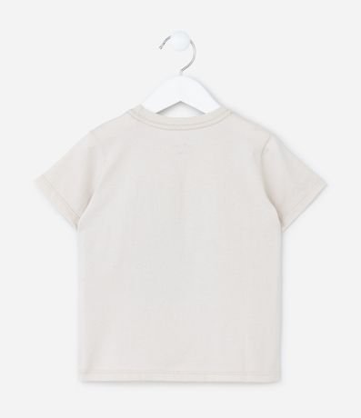 Camiseta infantil com gola redonda, mangas curtas e estampa de quadra e raquete de tênis, com lettering "Tennis Club Day". Peça confeccionada em algodão.