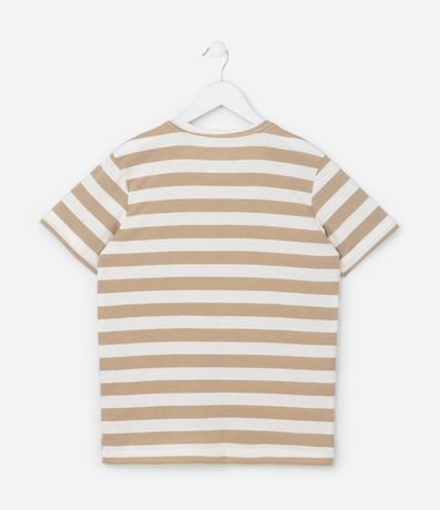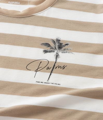 Ref: Camiseta infantil confeccionada em algodão mais sustentável, com gola redonda, mangas curtas e estampa de listras e coqueiro.