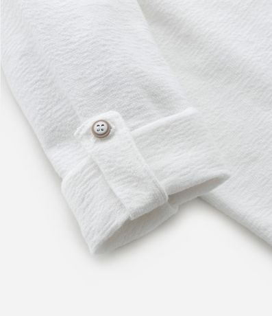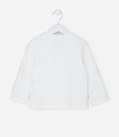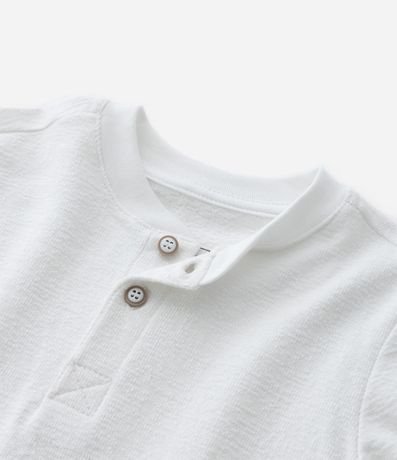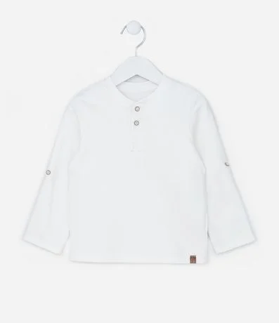 Ref: Camiseta infantil confeccionada com algodão certificado e boas práticas sustentáveis. Possui gola henley com fechamento por botões, mangas longas com detalhe de abotoamento e etiqueta na barra.