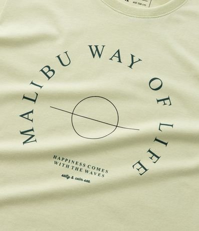 Ref: Camisetinha infantil em meia malha com gola redonda, mangas curtas e lettering estampado no peito "Malibu Way Of Life", que em português significa "Malibu: Um Estilo de Vida".