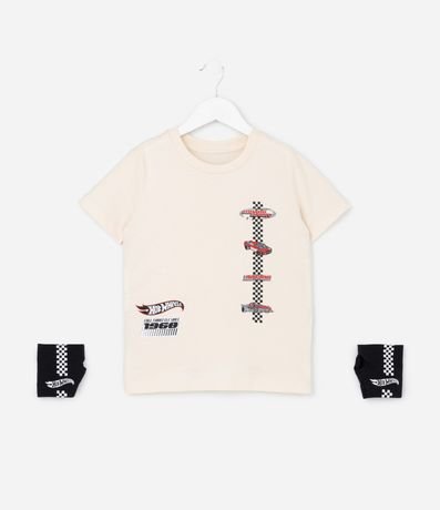 Ref: Camiseta infantil confeccionada em algodão de material mais sustentável. Possui gola redonda, mangas curtas, estampa da Hot Wheels e acompanha luvinhas também.