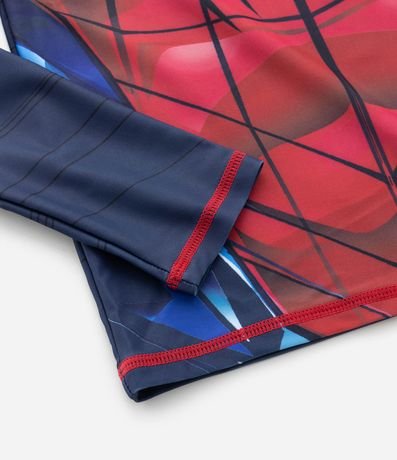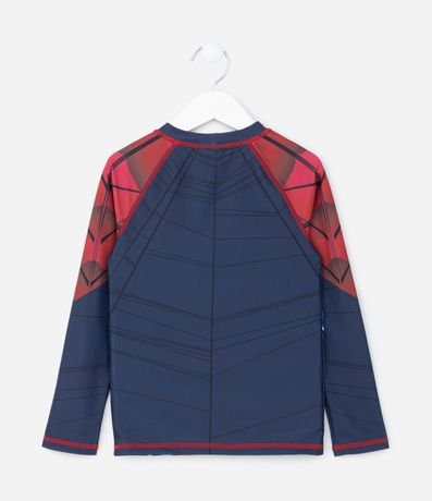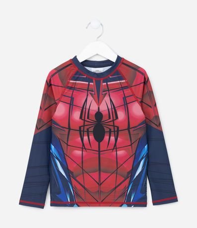 Ref: Camiseta de banho infantil com proteção uv, gola redonda, manga longa e estampa do Homem Aranha.
