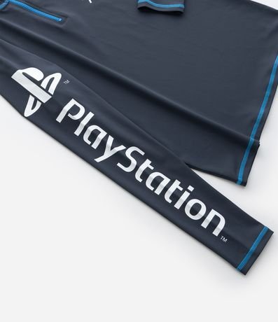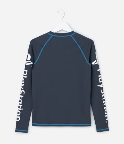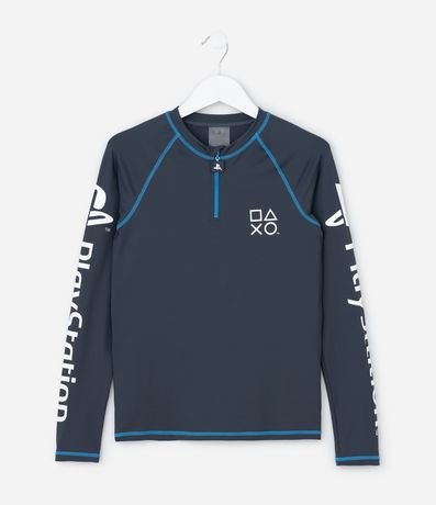 Ref: Camiseta infantil confeccionada em microfibra com proteção UV. Possui gola redonda, fechamento por zíper, mangas longas e estampa Playstation.