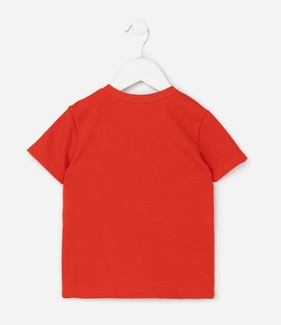 Ref: Camiseta infantil confeccionada em algodão mais sustentável através de boas práticas ambientais. Possui gola redonda, manga curta, sem estampa, com recorte no peito e texturizada.