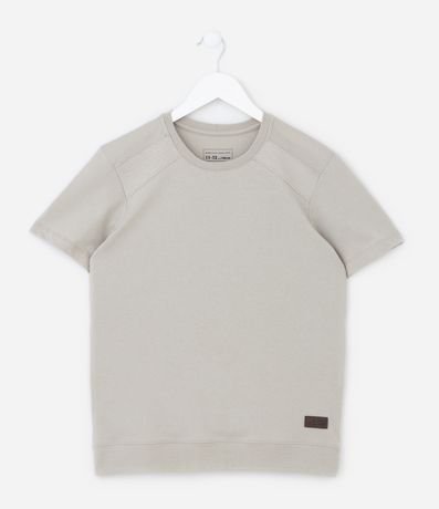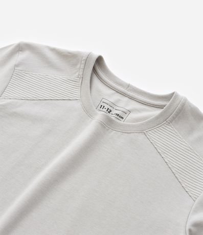 Ref: Camiseta infantil confeccionada em malha de algodão mais responsável, com gola redonda e mangas curtas. Possui recortes texturizados na frontal, sem estampa.