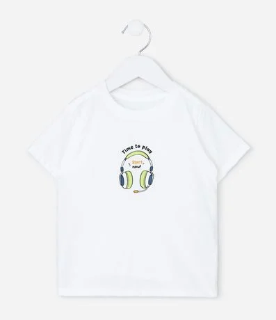 Ref: Camiseta infantil confeccionada em malha de algodão mais responsável, com gola redonda e mangas curtas. Possui estampa frontal de fone de ouvido com lettering "time to play".