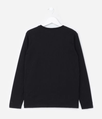 Camiseta infantil confeccionada em algodão mais responsável, com gola redonda e mangas longas. Possui estampa do Sonic.