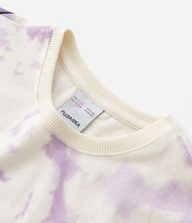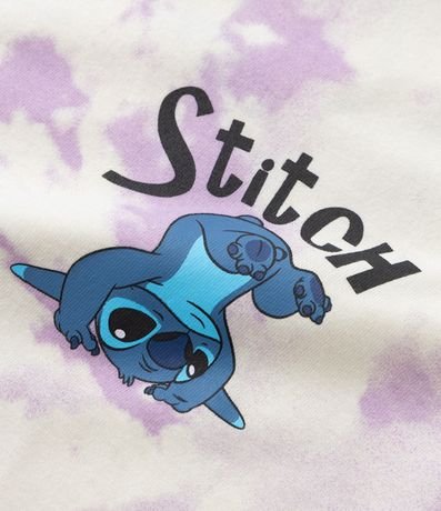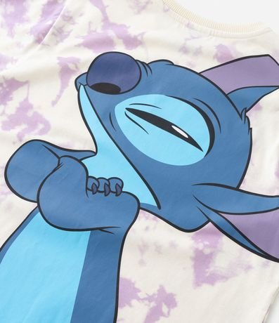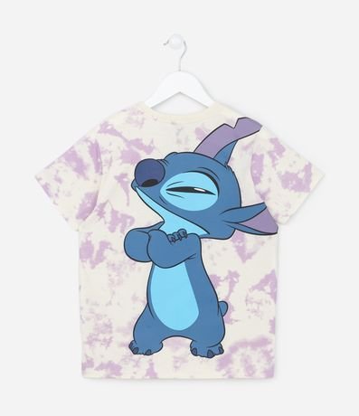 Ref: Camiseta infantil em meia malha com gola redonda, mangas curtas, fundo tie dye e estampa do Stitch.