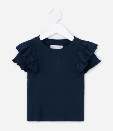 Camiseta Infantil em Ribana com Babado de Broderie – Tam 1 a 5/6 Anos
