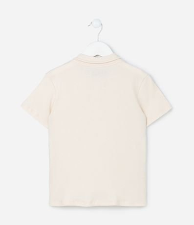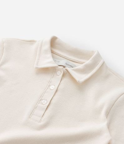 Camiseta infantil confeccionada em ribana de material e processo e sustentável. Possui gola polo, fechamento por botões e manga curta.