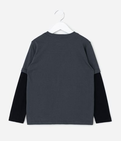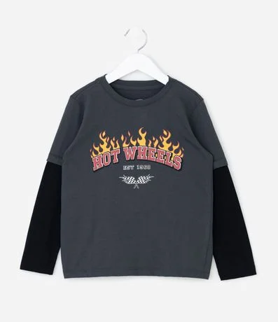 Ref: Camiseta infantil confeccionada em algodão certificado BCI, com visual inspirado no universo Hot Wheels. Possui gola redonda, mangas longas com efeito sobreposto e estampa localizada com chamas e elementos gráficos, criando um estilo moderno e marcante para compor looks casuais.