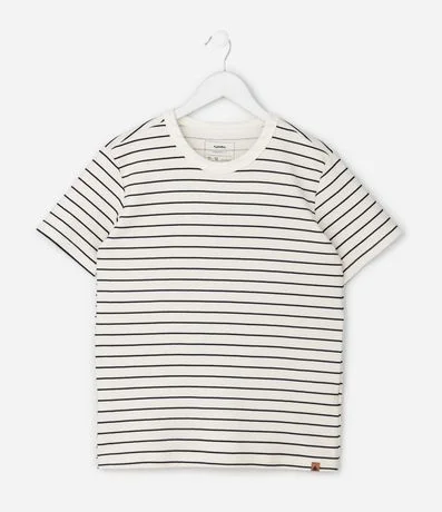 Ref: Camiseta infantil confeccionada em algodão certificado BCI. Possui gola redonda, mangas curtas e barra reta. A padronagem de listra trabalhada em relevo cria textura diferenciada na superfície da meia malha, garantindo visual moderno para looks casuais.