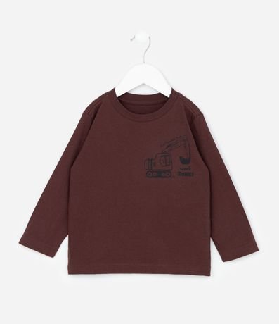 Camiseta Infantil Manga Longa com Estampa de Escavadeira – Tam 1 a 6 Anos