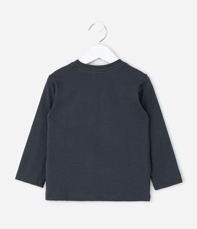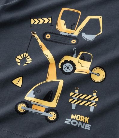 Ref: Camiseta infantil confeccionada em algodão certificado BCI. Possui gola redonda, mangas longas e estampa localizada de tratores em estilo gráfico, criando visual divertido e moderno para o dia a dia.