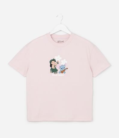 Camiseta Infantil Oversized com Estampa Havaiana Lilo e Stitch - Tam 5 a 14 Anos