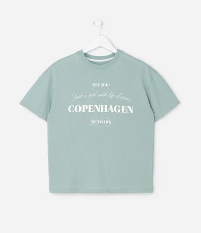 Ref: Camiseta infantil confeccionada em meia malha de algodão, com modelagem oversized que garante caimento amplo e estiloso. Possui gola redonda, mangas curtas e estampa localizada com lettering inspirado em Copenhagen, entregando visual moderno. Confeccionada em algodão certificado BCI.