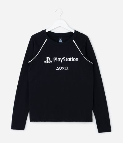 Ref: Camiseta infantil confeccionada em algodão certificado BCI e boas práticas ambientais. Possui gola redonda, mangas longas em modelagem raglan e viés contrastante. A estampa localizada traz elementos clássicos do universo PlayStation, referência mundial em jogos, criando visual moderno e cheio de personalidade para os fãs.