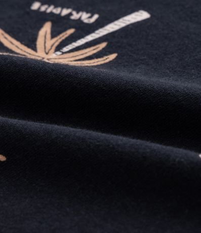 Camiseta infantil confeccionada em cotton  mais sustentável através de boas práticas ambientais. Possui gola redonda, manga curta e estampa de coqueiros.