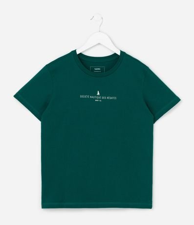 Ref: Camiseta infantil confeccionada em algodão mais sustentável através de boas práticas ambientais, no modelo regular. Possui gola redonda, manga curta e estampa de mini ícone de barco.