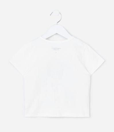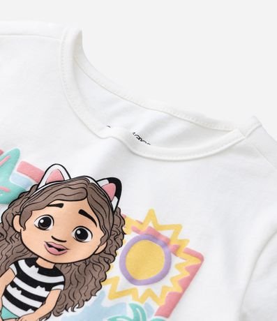 Ref: Camiseta infantil confeccionada em algodão mais sustentável através de boas práticas ambientais, no modelo regular. Possui gola redonda, manga curta, estampa fundo do mar e Gabby.