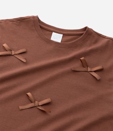 Camiseta Infantil Relaxed Boxy com Laços Aplicados – Tam 5 A 14 Anos