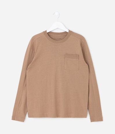 Ref: Camiseta infantil modelo relaxed confeccionada em algodão certificado BCI, com gola redonda, mangas longas e bolsinho aplicado no peito com detalhe canelado superior. Possui acabamento reforçado, estrutura leve em meia malha e barra simples adequada ao uso cotidiano.