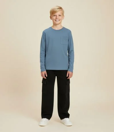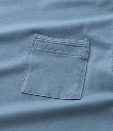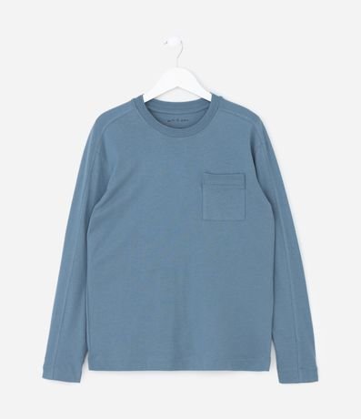 Ref: Camiseta infantil modelo relaxed confeccionada em algodão certificado BCI, com gola redonda, mangas longas e bolsinho aplicado no peito com detalhe canelado superior. Possui acabamento reforçado, estrutura leve em meia malha e barra simples adequada ao uso cotidiano.