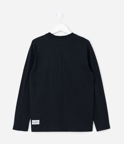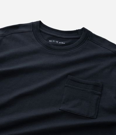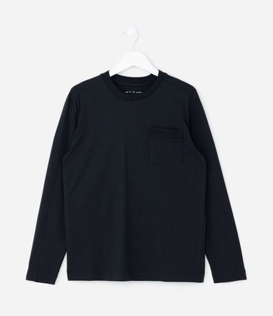 Ref: Camiseta infantil modelo relaxed confeccionada em algodão certificado BCI, com gola redonda, mangas longas e bolsinho aplicado no peito com detalhe canelado superior. Possui acabamento reforçado, estrutura leve em meia malha e barra simples adequada ao uso cotidiano.