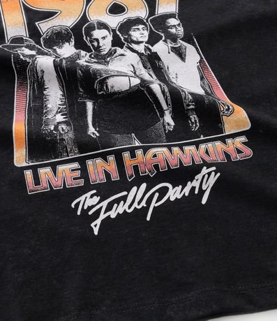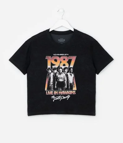 Ref: Camiseta infantil confeccionada em algodão mais sustentável através de boas práticas ambientais, no modelo relaxed. Possui gola redonda, manga curta e estampa Stranger Things.