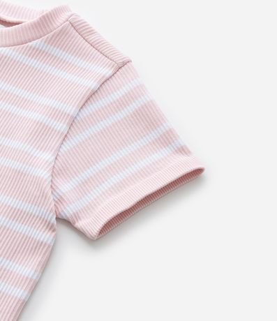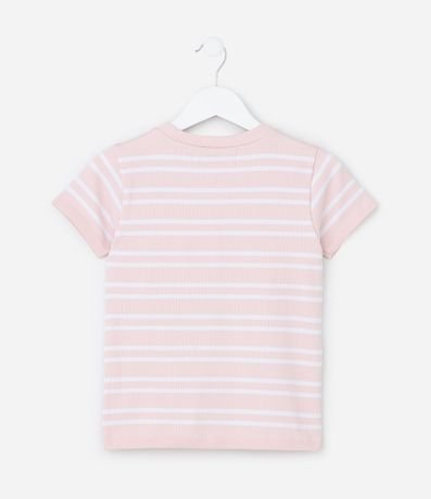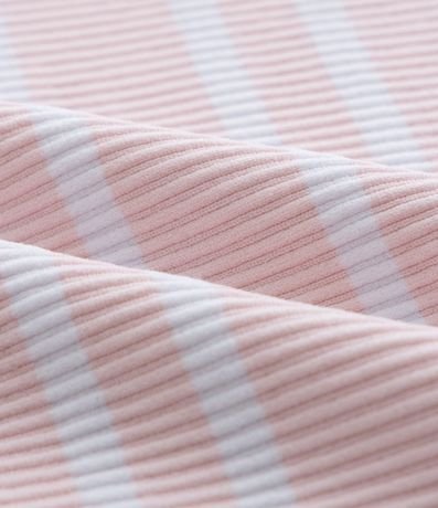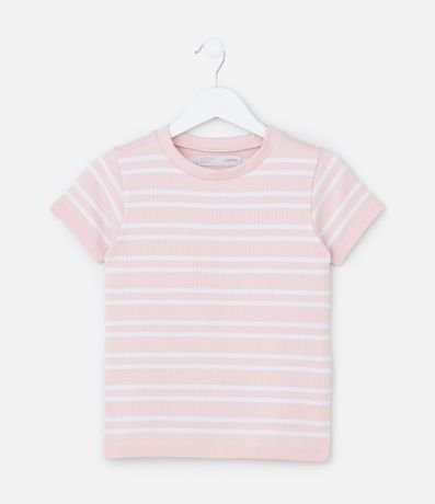 Camiseta infantil confeccionada em poliamida, sem costura, com textura canelada e estampa listradinha.