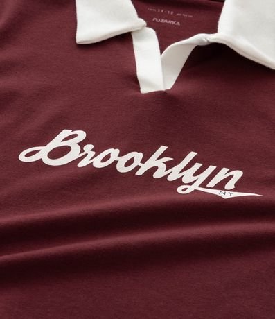 Camiseta Infantil Slim com Estampa Brooklyn e Gola Polo – Tam 7 a 16